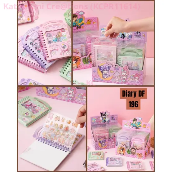 Adorable Kuromi Spiral Sticker Diary Notebook (DF 196) with beautiful kawaii cover designs. Comes with decorative stickers, mini accessories, and spiral binding. Perfect cute journal for girls who love Sanrio characters.